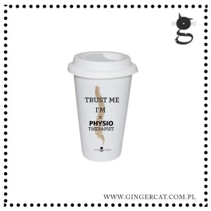 Kubki typu tumbler posiadają podwójną ściankę zapewniającą doskonałą izolację termiczną napojów, zarówno gorących jak i zimnych. Kubek wyposażony jest w białe wieczko silikonowe zapobiegające rozlewaniu się napoju np. w samochodzie. Dla fizjoterapeutów.