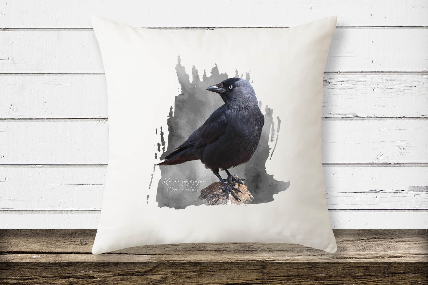 Wzór na poduszce - "Kawka - Corvus monedula - Kawka zwyczajna - prezent dla ornitologa - Poduszka".